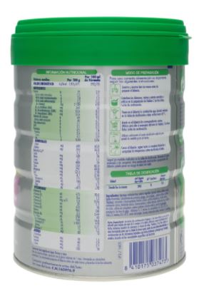 Leche desnatada, lactosa, aceites vegetales (girasol, niabina, coco), grasa láctea, oligosacáridos (lactosa), concentrado de proteínas séricas</u> rico en MGFM, concentrado de proteínas séricas rico en α-lactoalbumina, minerales (citrato potásico, carbonato cálcico, cloruro potásico, cloruro sódico, fosfato cálcico, cloruro magnésico, sulfato de hierro, sulfato de zinc, sulfato de cobre, yoduro potásico, selenito sódico, sulfato de manganeso), aceite de pescado, 2′-fucosil-D-lactosa, cloruro de colina, emulgente (lecitina de soja), vitaminas (C, niacina, ácido pantoténico, A, tiamina, riboflavina, B6, ácido fólico, K, D, biotina, B12), aceite de Mortierella alpina, taurina, inositol, nucleótidos (citidina 5´monofosfato, uridina 5´mononofosfato, adenosina 5´monofosfato, guanosina 5´monofosfato, inosina 5´monofosfato), antioxidantes (extracto rico en tocoferoles), L-carnitin