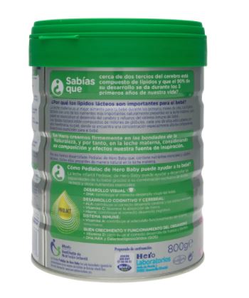 La leche infantil de inicio 1 [0 – 6 MESES – Pedialac de Hero Baby aporta los ingredientes necesarios para el óptimo desarrollo de tu bebé, destacando sus lípidos lácteos, DHA, ARA, GOS y nucleótidos, todos ellos presentes naturalmente en la leche materna. Indicada a partir de su nacimiento.